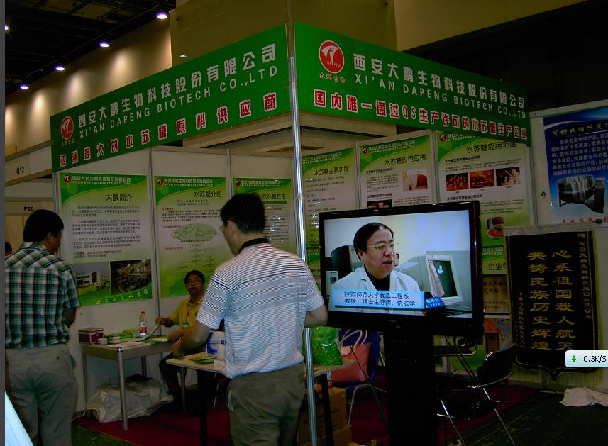 參加中韓貿(mào)洽會 走向國際大市場 參加青島食品配料展 尋求發(fā)展新商機(jī) 水蘇糖,我要認(rèn)識你! 大鵬生物參加2012中國國際輕工消費品展覽會 恭賀大鵬生物榮獲中國輕工展覽科技創(chuàng)新獎 大鵬生物參加第五屆中國國際飲料工業(yè)科技展 第四屆中國營養(yǎng)產(chǎn)業(yè)高層論壇開幕 大鵬公司董事長與公眾營養(yǎng)健康中心主任于小冬在水蘇糖聯(lián)誼會上 高鵬董事長在第四屆中國營養(yǎng)產(chǎn)業(yè)高層論壇上 公眾營養(yǎng)改善OLIGO項目啟動儀式